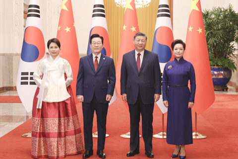 【中新社北京一月五日電】一月五日下午,中國國家主席習近平在北京人民大會堂同來華進行國事訪問的韓國總統李在明舉行會談。