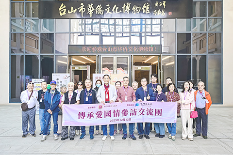 行程首站前往江門新會的「十月初五餅家」生產基地,參觀食品製作流程,並讓團員親身體驗鳳梨酥烘焙,感受澳門傳統品牌在大灣區的創新發展。其後,團隊前往台山華僑文化博物館,透過豐富歷史文物與場景,深入了解華僑遠赴海外、心繫家國的奮鬥故事。最後到訪著名僑鄉建築群「梅家大院」,親身感受融合中西特色的騎樓建築,並認識華僑歷史載體的意義。