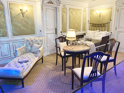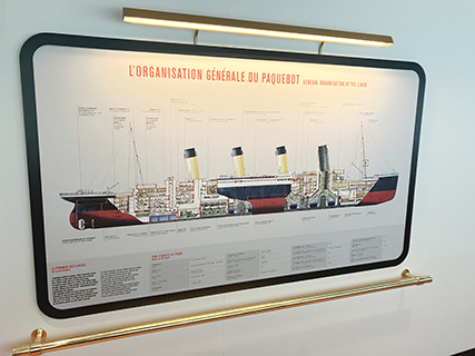 這是一間很普通的展覽館,位於法國海港瑟堡科唐坦(Cherbourg-en-Cotentin)的郵輪碼頭旁,是面積不大的橢圓形,最大特色是正面牆壁的弧形大銀幕顯示屏,利用三十分鐘身歷聲音響,把人帶回遠洋郵輪鐵達尼號,航行、撞冰山與沉沒的全過程。