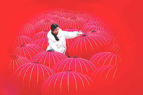 ◎ 一月二十日,工作人員正在晾曬製作好的燈籠。隨著春節臨近,紅燈籠銷售走俏。在四川省成都市金堂縣金龍鎮鴻發燈籠廠的生產車間內,工人們正開足馬力趕製燈籠。這裡製作的紅燈籠近則懸掛在川西民居的大門前,遠則漂洋過海抵達東南亞等地。鴻發燈籠廠經過十餘年發展,如今在「00後」廠長陳俊龍的帶領下已成為當地的標誌性特色產業,廠房面積達四千多平方米,每年生產燈籠上百萬隻。(中新社記者安源 攝)