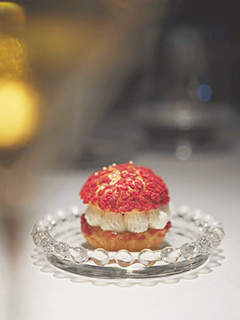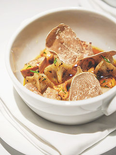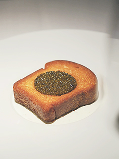 這一單點菜單中的招牌之作,將經典法式香腸麵包(Cervelas en Brioche)重新演繹!布里歐修麵包酥香可口,中空部分填入了牛肉韃靼與魚子醬,形成口感上的鮮明對比。牛里脊與牛柳以手切方式處理,滑潤中富有嚼勁,搭配帶有微妙顆粒感的魚子醬,咸鮮風味層層遞進。