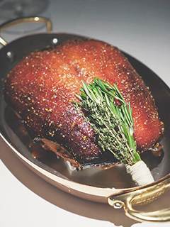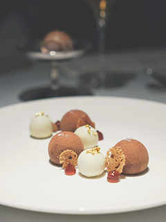 用餐中途,主廚竟邀請我們深入廚房重地,見證杏脯鴨配小麥粒的誕生過程。我們不僅圍觀摩烹飪,更可在主廚餐桌即時享用,好奇心和口腹之欲同時得到滿足。回歸這道招牌菜本身,主角是歷經十四天干式熟成的巨型鴨,鴨皮厚而酥脆,入口先是如破殼般的清脆響聲,隨之而來是鴨肉帶來的嫩滑柔韌。肉香、杏脯的蜜意與小麥粒的堅果香氣交織融合,這正是主廚從家鄉遊歷至世界各地所積累的味覺縮影。