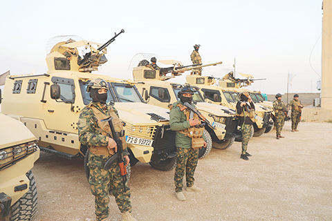 ◎ 美軍中央司令部一月二十一日發佈消息說,美軍當天開始將關押在敘利亞東北部的極端組織「伊斯蘭國」人員轉移到伊拉克,以確保「恐怖份子繼續關在安全的拘押設施里」。美軍計劃最終轉移不超過七千名「伊斯蘭國」在押人員。伊拉克軍方二十一日晚間證實,伊方已接收首批一百五十名「伊斯蘭國」人員。連日來,敘利亞東北部局勢變化引發部份伊拉克民眾對伊敘邊境安全的擔憂。伊拉克總理蘇達尼日前視察伊敘邊境地帶,強調持續加強軍事部署,確保邊境安全。圖為二十三日,伊拉克安全部隊成員在位於安巴爾省的伊敘邊境地帶集結。(新華社發 哈利勒.達伍德 攝)