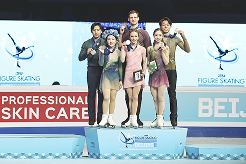 美國組合埃菲莫娃/米特羅法諾夫、日本組合長岡柚奈/森口澄士分獲冠軍和季軍。「00後」中國新銳組合張嘉軒/黃一航自由滑拿到127.24分,總分為196.29分,均創職業生涯新高,排名第四。