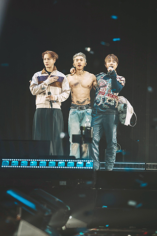 來到演唱會尾聲,Tyson例牌收到大批熱情Fans「飛Bra上台」,當他送上最後一首歌《In My Dream》時,Jackson與大佬軒再度「Encore出場」,Tyson見狀即「分Bra同味」,兩位亦開心揈Bra,最後更與全場觀眾齊齊締造第二晚的「澳門地震」!兩位「老Best」張敬軒與王嘉爾破天荒合體力撐Tyson,為首個澳門騷增添一幕又一幕黃金畫面,集氣三位音樂才子下次再聚,同時期待Tyson之後重返「音樂家鄉」台灣開騷!