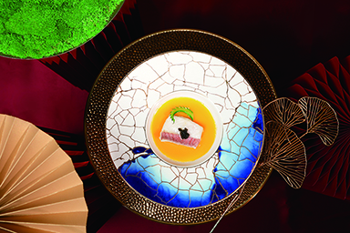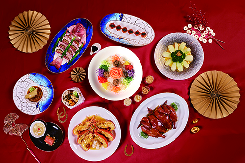 節慶菜單以寓意吉祥的新春撈起三文魚為亮點,融合三文魚、金黃薄脆和蔬菜絲,可親手「撈起」為新年掀起好運。菜單包括新加坡黑胡椒蟹、發財蠔豉大利及新春鴻運當頭烤乳豬。為增添歐陸風味體驗,餐廳特別設有廚師即席主理的現切伊比利亞5J火腿,甜品專區品嚐主題甜點,為這頓豐盛團圓聚餐畫上圓滿句號。