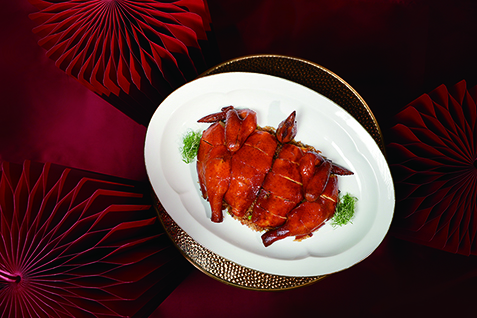 六人賀年套餐(4,688澳門元)包括當紅糯米脆皮雞及蒜香百合焗龍蝦等,讓團圓餐宴增添滿足與溫馨。