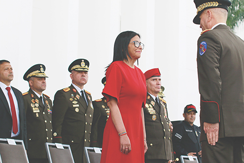 委內瑞拉軍方承認代總統羅德里格斯為最高統帥 2026-01-30 03:30:00 ◎ 委內瑞拉軍方一月二十八日承認代總統德爾西.占士洛迪古斯為最高統帥。圖為當日,委內瑞拉代總統德爾西·占士洛迪古斯(前左)在加拉加斯出席軍方活動。(新華社發 委內瑞拉總統府供圖)