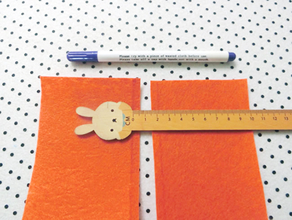 (八)在証件套內貼布的布面長則的布邊位置,用筆和直尺畫上1cm的記號。