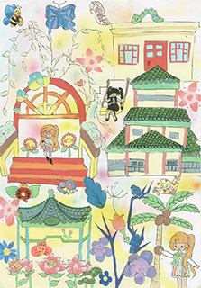 1. 絲綢版畫——開開心心的一天  菜農子弟學校  六年級  吳月婷