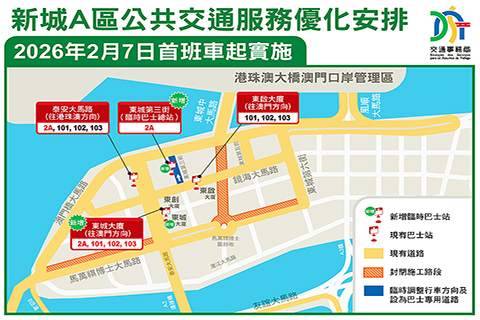 2月7日起,A區將增設「東城第三街」臨時巴士總站以及「東城大廈」臨時巴士途經站,以優化居民前往巴士站的距離及動線。巴士路線方面,同日首班車起2A路線延伸行程至A區,並以「東城第三街」作為總站,增加居民前往中南區的出行路線選擇;103路線的覆蓋範圍亦將擴展至祐漢區,便利居民前往北區民生區域,亦為跨區出行提供更多換乘的選擇,提升出行效率。同時,原有101X及102X路線調整為101及102,並按一般路線票價收取車資。