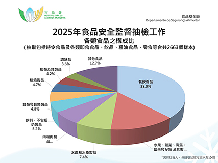 總結去年市政署於市面抽檢共2,663個食品樣本,包括170個時令節日食品樣本,1,481個預包裝、散裝及鮮活食品樣本及1,012個餐飲食品樣本,當中有8個樣本未能通過檢測,其餘樣本未見異常,整體合格率達99%以上。市政署已跟進不合格樣本個案,包括勒令商戶下架及停售相關產品,並追查問題食品來源等,有關訊息早前亦已透過新聞稿發佈。