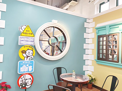 二樓的天台是咖啡茶座,有西式的美食,因為是露天可以飽覽氹仔舊城區的美景,茶座舒適的環境,很受休閒人士前來聊天,現代的餐飲以電子方式支付,是豐富居民和旅客的購物選擇及消費體驗。