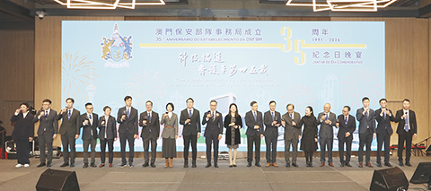 【特訊】為慶祝澳門保安部隊事務局成立三十五周年,本局於2月4日假澳門旅遊塔四樓宴會廳舉行晚宴,以「科技協進齊護平安」為主題,回顧本局發展歷程,分享在資訊技術研發、綜合技術、口岸保障及行政管理等方面的工作成果,並展望未來工作。