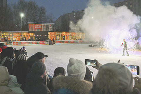 台青節前忙出貨: 一縷蘭香兩岸情 莫斯科:冰上舞火 馬到金來 莫斯科:冰上舞火 2026-02-08 03:30:00 一場冰上表演一月廿四日在俄羅斯首都莫斯科的一處滑冰場上演,吸引眾多市民前來觀看。(新華社記者 郝建偉 攝)