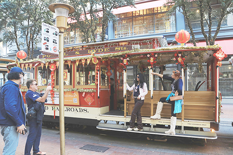 美國舊金山馬年氛圍漸濃 2026-02-08 03:30:00 ◎ 臨近中國春節,美國三藩市舉行馬年主題活動,增添節日氣氛,吸引當地民眾參與。圖為二月六日,在美國三藩市,人們在裝飾著中國春節飾品的觀光車旁拍照。(新華社發 劉藝霖 攝)