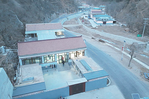 ◎ 二月十日,農曆臘月二十三,中國北方小年,中新社記者回訪河北省興隆縣六道河鎮。當地道路暢通、新居林立,受災村民年貨充足,喜迎新春。二零二五年汛期,興隆縣遭遇嚴重洪澇災害,六道河鎮為全縣重災區。圖為航拍六道河鎮六道溝村村民王洋洋家。(無人機照片)(中新社記者 翟羽佳 攝)