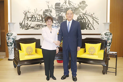 賀一誠歡迎卞立新來澳履新,積極評價公署涉澳外交工作,希望公署繼續為拓寬特區國際「朋友圈」、助力澳門經濟適度多元發展作出新的貢獻。◇