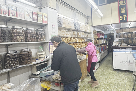 在紅街市及義字街一帶,近日人流明顯增多,有海味舖負責人稱,行街的人確實是多了,不過買年貨的客人未見多,一般都是買少少冬菇、蠔豉、雲耳、魷魚、金針、粉絲等普通年貨,花膠、鮑魚、海蔘等貴價年貨,銷情麻麻,就算熟客都是買「啲啲」,夠煲一、兩餐湯,大家都是「就住就住駛錢」。
