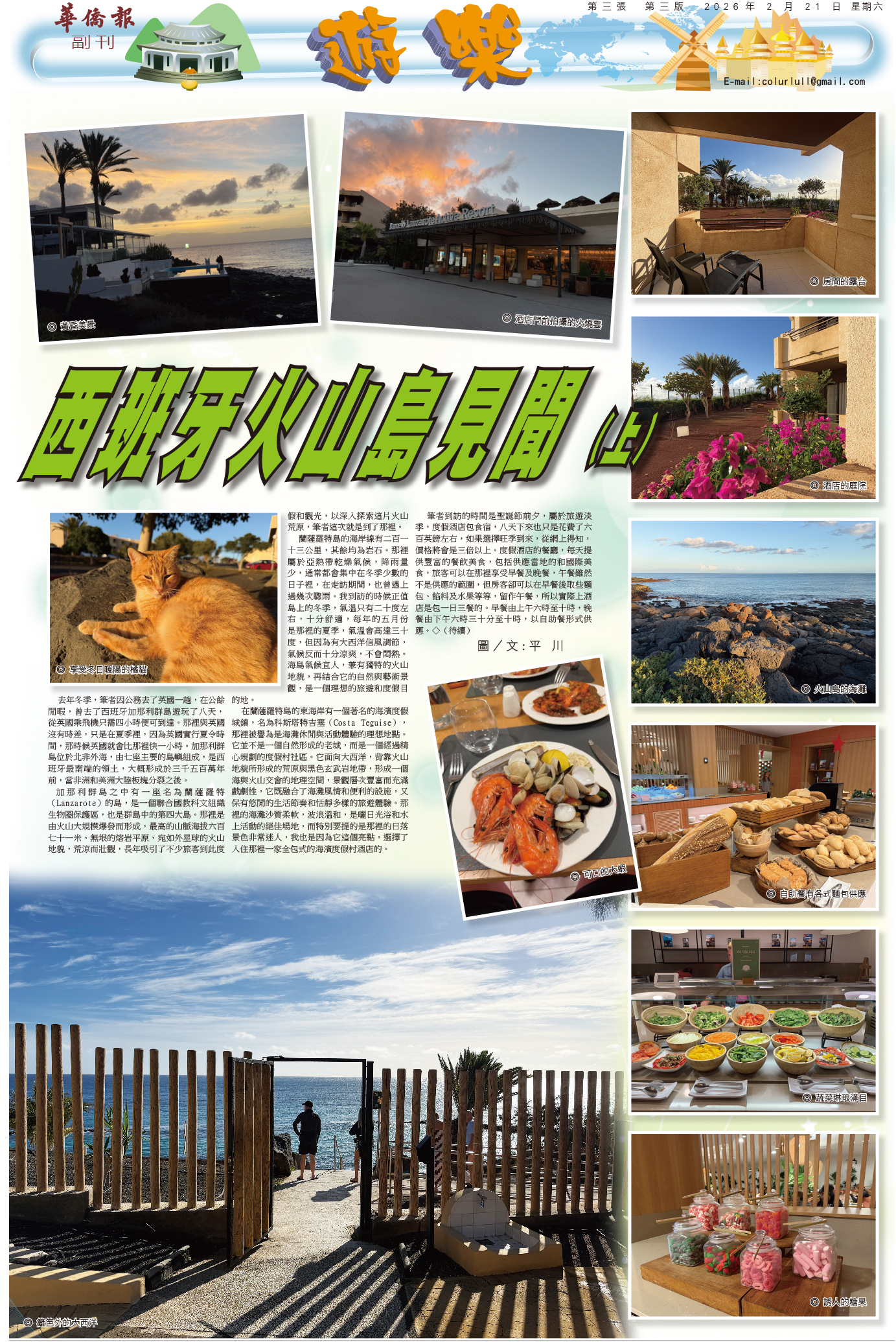 去年冬季,筆者因公務去了英國一趟,在公餘閒暇,曾去了西班牙加那利群島遊玩了八天,從英國乘飛機只需四小時便可到達。那裡與英國沒有時差,只是在夏季裡,因為英國實行夏令時間,那時候英國就會比那裡快一小時。加那利群島位於北非外海,由七座主要的島嶼組成,是西班牙最南端的領土,大概形成  於三千五百萬年前,當非洲和美洲大陸板塊分裂之後。