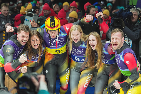 在科爾蒂納滑行中心結束的雪橇團體接力比賽中,德國隊展現絕對統治力,刷新賽道紀錄並摘金,實現該項目四連冠。中國隊最終總成績為3分46秒842,排名第七,較北京冬奧會該項目第12名的成績實現提升。