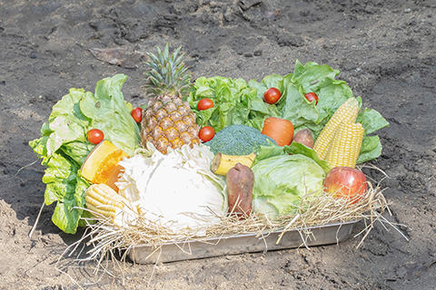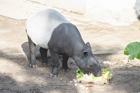 農曆春節將近,家家戶戶正忙著準備年菜,台灣台北動物園也幫動物加菜過好年。動物園中的動物有各自專屬的食譜營養計劃,並非隨意配搭。◎保育員每天都依照季節時令及照護需求,為動物準備營養均衡、色香味俱全的食材,加些「擺盤」的小巧思,增添了新年節慶氛圍。圖為馬來貘的年菜盤有高麗菜、萵苣、花椰菜、玉米、地瓜、蘋果、鳳梨等蔬菜水果。(香港中通社圖片)