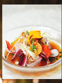 來自Nae:um Restaurant的主廚Chef Louis Han先以一道韓式刺身沙律撩動眾人胃口,油潤的間八、扇貝與墨魚散發著清新的柚子氣息,鮮味拔得頭籌。