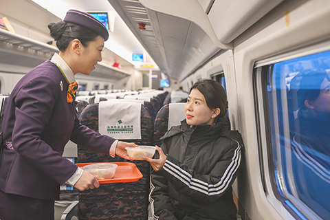 除夕夜旅客在高鐵上吃餃子迎春節 2026-02-17 03:31:00 ◎ 二月十六日,農曆除夕,由中國鐵路瀋陽局集團有限公司大連客運段動車四隊擔當的瀋陽-錦州北D7764次列車上,列車長商燁為旅客送上餃子。(中新社記者 于海洋 攝)