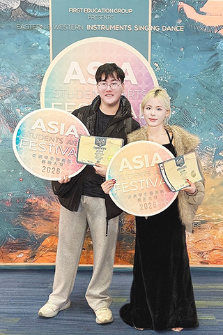 【特訊】澳門理工大學設計及藝術學院音樂學士學位課程聲樂表演專業學生宗小歡、蔡詩怡憑藉紮實的聲樂技能,以及出色的舞台表現力,在「二0二六 ASAF 亞洲學生藝術節國際音樂大賽」分別奪得「古典聲樂公開組」冠軍及季軍,為大學及澳門爭光添彩。