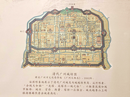 明洪武十三年(一三八O年),永嘉侯朱亮祖修建廣州城時,在越秀山上修築了一座五層樓,取名「鎮海樓」,以示威鎮嶺海之意。鎮海樓與越秀山北城墻連成一片,成為明清時期重要的城市防禦設施及廣州城的標誌性建築。這里也是老廣州中軸線的最高處。