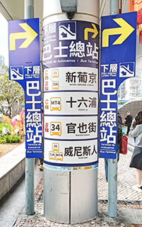 步出關閘邊檢大樓,首先映入眼簾的,是入境一邊長廊圓柱上的公交巴士資訊。靠近邊檢大樓的那些柱子,被五顏六色的各種巴士資訊帖滿了。印象中,那些銀灰色的圓柱,很是乾淨清爽。現今,圓柱上五花八門的搭車資訊,有如商舖結業之前,清倉甩賣,各種商品的價錢,寫在各類懸掛的紙張之上,真正琳琅滿目。