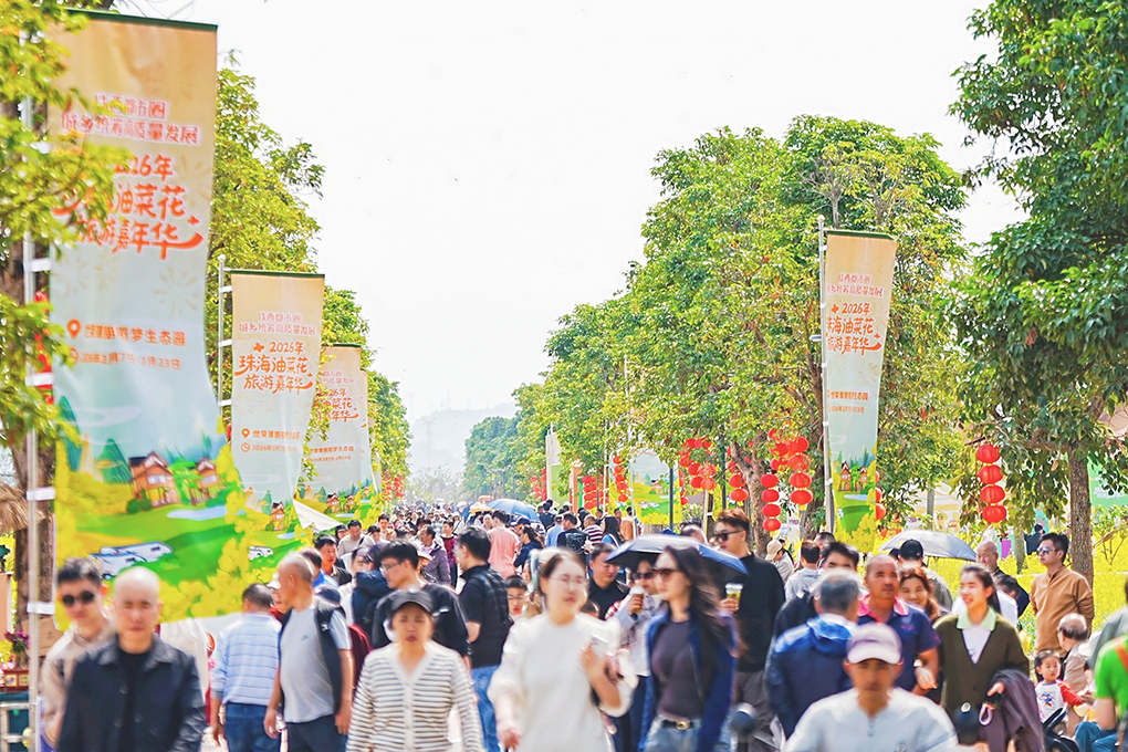 世榮草朗稻夢生態園作為第三屆珠海油菜花旅遊嘉年華主會場,千畝油菜花海在春節假期全程迎來客流高峰。園區內城市、國風、新春、田園四大主題美陳打卡點、新春市集及花仙子巡遊等活動,讓遊客在田園風光中流連忘返,深度體驗了珠海的生態年味,成為假期裡親子出遊、休閒踏青的熱門之選。