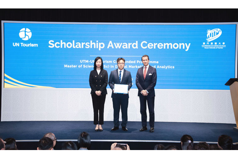 【特訊】二月二十七日,澳門旅遊大學與聯合國世界旅遊組織在氹仔校區合辦獎學金頒贈儀式,由聯合國世界旅遊組織創新、教育和投資部主任安東尼奧‧洛佩斯德阿維拉(AntonioLopezdeAvila),以及澳門旅遊大學校長黃竹君共同主禮,表彰首位獲頒「數碼營銷與分析理學碩士」合作課程獎學金的優秀學生。