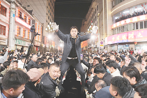 ◎ 三月二日,在臨潭縣「萬人扯繩」民俗活動現場,參賽人員在指揮拔河。「萬人扯繩」是甘肅省甘南藏族自治州臨潭縣每年農曆正月十四至十六舉行的傳統民俗活動,相傳已有六百多年歷史。此次活動參加者以長度超過一千八百米、重達十六噸的鋼繩為器械,展開拔河角逐。二0二一年,「拔河(萬人扯繩賽)」被列入第五批國家級非物質文化遺產代表性項目名錄。(新華社記者 張睿 攝)