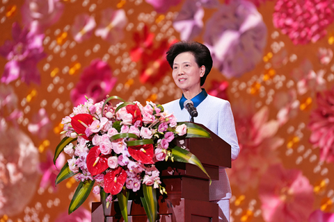 ◎ 三月六日,紀念「三八」國際婦女節中外婦女招待會在京隆重舉行。國務委員、全國婦聯主席諶貽琴致辭。(中新社記者 張祥毅 攝)