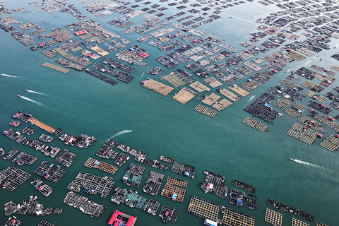 ◎ 3月13日,中國自然資源部在北京發佈《2025年中國海洋經濟統計公報》顯示,初步核算,2025年全國海洋生產總值110180億元人民幣,比上年增長5.5%。資料圖為2025年9月13日,福建省東山縣海域上的養殖區。(無人機照片)(中新社記者 張斌 攝)