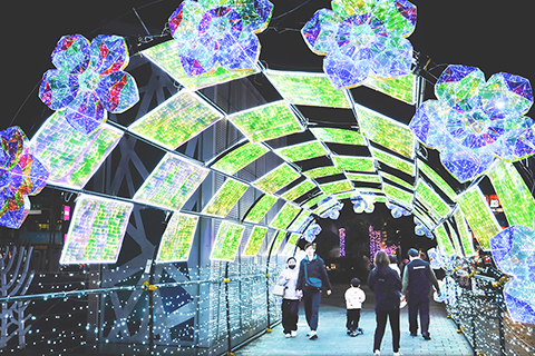 新北市光雕展閃亮登場 2026-03-15 03:31:00 台灣新北市新莊中港大排光雕展閃亮登場,以「星耀中港 夢幻星河」為主題,運用超過三百萬盞炫彩LED燈,營造如夢似幻的夜間光景,點亮中港河廊,讓民眾沉浸在初春的愛、希望和幸福的世界裡,浪漫迎接台灣的白色情人節。(香港中通社圖片)