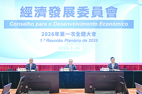 經濟發展委員會二0二六年第一次全體大會,昨早在中葡綜合體舉行,大會由身兼經濟發展委員會主席岑浩輝主持。議程包括由委員會副主席、經濟財政司司長戴建業介紹了澳門經濟現況及發展策略,經濟及科技發展局局長邱潤華匯報了委員會近期的工作情況。