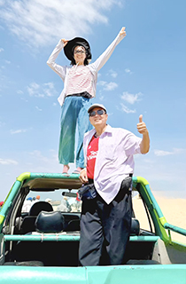 在這裡可以體驗滑沙、衝沙、騎乘沙灘摩托,我們則選擇搭乘吉普車,在沙漠中飛馳。司機特意開上高處,再沿沙山向下衝刺,緊張、刺激又暢快!