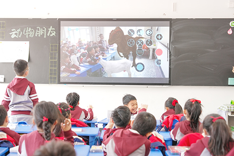 三月十八日,黑龍江哈爾濱繼紅小學,學生在智慧美術課堂通過AR技術「近距離」觀察動物形態。該校是首批國家級人工智能教育基地,學校將AI備課平台、課堂循證設備、智能作業批改平台、智慧體育設備等融合場景落地應用,把AI與教學深度融合,課堂教學實現「雙向互動」。◇(中新社)