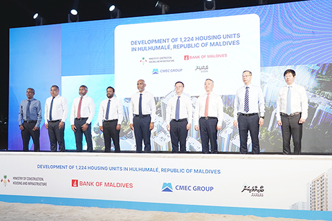 ◎ 三月廿一日,馬爾代夫總統穆伊茲(中)在胡魯馬累出席由中企承建的馬爾代夫保障性住房項目開工儀式。由中國企業承建的馬爾代夫保障性住房項目當晚在胡魯馬累舉行開工儀式,馬總統穆伊茲、多名內閣部長、人民議會議員和中國駐馬大使孔憲華出席儀