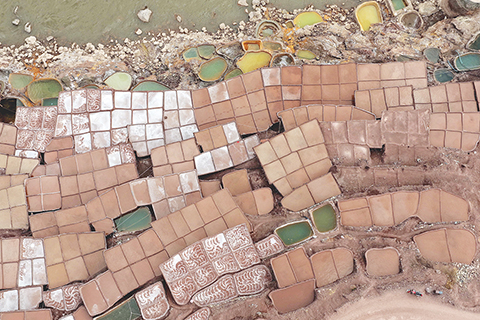 ◎ 三月二十四日,航拍千年鹽田。千年古鹽田位於西藏昌都市芒康縣境內,數千塊鹽田錯落分佈瀾滄江兩岸,猶如大地藝術畫卷。當地民眾遵循古老傳統,引水曬鹽,距今已有一千三百多年的歷史。(無人機照片)(中新社記者 李林 攝)