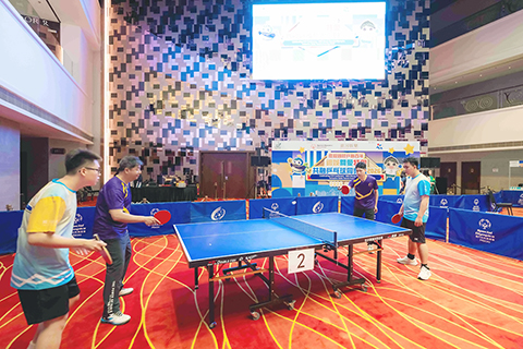 同樂日於「澳門百老匯™」進行多項乒乓球比賽,旨在為不同能力的運動員提供競技交流平台。今年更增設「照顧者挑戰賽」,鼓勵有特殊需要人士的家長或照顧者投入其中,拓展多元參與。銀娛亦組織銀娛員工康樂會屬下的乒乓球隊成員參與「共融雙打賽」,與特奧會運動員並肩參賽,弘揚傷健共融精神。現場還設置了多個結合乒乓球元素的遊戲攤位,讓參加者在趣味互動體驗中加深對乒乓球運動的了解。