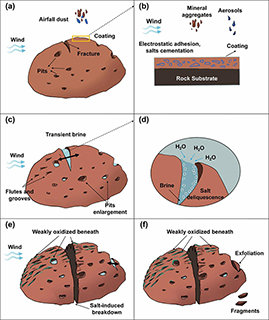 論文第一作者、中國科學院國家空間科學中心吳興副研究員介紹說,火星岩石表層是記錄大氣—地表相互作用的關鍵載體,鹽風化作用則是可溶性鹽類在岩石中反復溶解、結晶並導致岩石破碎的過程。