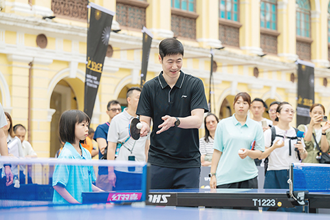慶祝儀式4日上午議事亭前地舉行,邀請國際乒聯及中國乒乓球協會代表,以及中國乒乓球隊球員蒯曼、薛飛和中國澳門球手梁安娜,與澳門青少年乒乓球學校學員進行互動交流。出席儀式的嘉賓包括:國際奧委會委員、國際乒聯主席佩特拉·索林(Petra Sorling);國際奧委會委員邁克爾·姆龍茲(Michael Mronz);澳門體育局代局長李詩靈;中國乒乓球協會主席王勵勤;銀河娛樂集團企業事務董事林志成;國際乒聯副主席沈偉妮(Virginia Sung);世界乒乓球職業大聯盟首席執行官史蒂夫·丹頓(Steve Dainton);世界乒乓球管理集團副總裁陳欣;澳門乒乓球總會理事長許江雄。
