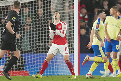【美聯社倫敦四月五日電】一比二不敵英冠排第七的修咸頓,阿仙奴本賽季四冠王的希望就此破滅。