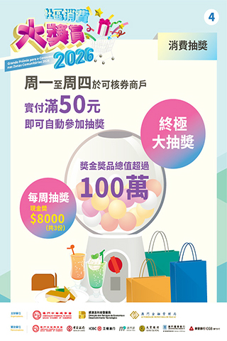 【特訊】為激發市場消費活力、提振社區經濟,特區政府與澳門中華總商會(下稱「中總」)攜手合作,於4月10日至6月18日期間舉辦為期10周的「2026社區消費大獎賞」活動,發放總值近4億澳門元的消費優惠。
