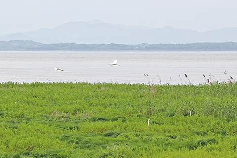 江西鄱陽湖:水漲草茂濕地如畫 2026-04-10 03:30:00 ◎ 四月九日,江西鄱陽湖都昌水域,鷺鳥或棲息在草洲,或飛翔于湖面。連日來,中國最大淡水湖鄱陽湖水位上漲,連片濕地草洲茂密葱鬱。湖區良好的自然環境,為候鳥和魚類提供了適宜的棲息繁殖空間。(無人機照片)(中新社記者 劉佔昆 攝)