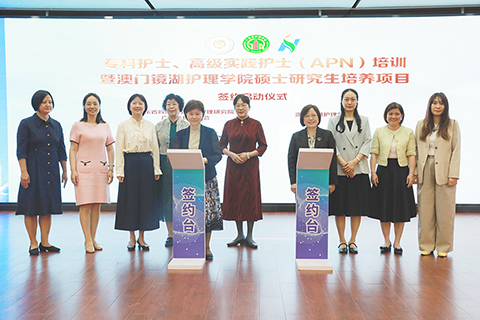 【特訊】爲貫徹國家「十五五」規劃要求及《粵港澳大灣區發展規劃綱要》,積極響應「塑造健康灣區」戰略部署,澳門鏡湖護理學院與廣東省護理學會、廣東省嶺南南丁格爾護理研究院,於二0二六年四月十日在穗舉行之第十三屆高水平專科護理實踐大會暨專科護士科技周活動開幕式上舉行合作備忘錄簽署儀式。此次合作旨在深化粵澳兩地護理專業的實質性交流,並透過資源共享與優勢互補,共同應對大灣區醫療衛生事業發展帶來的機遇與挑戰。廣東省科學技術協會學術部三級調研員馮娟,廣東省護理學會及廣東省嶺南南丁格爾護理研究院理事長成守珍,澳門鏡湖護理學院院長尹一橋、副院長梁淑敏、教學部主任王思琛、院長辦公室主任張凱盈及助理教授周嘉琪等出席了儀式。