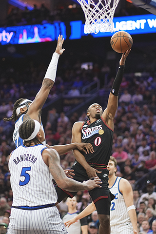 上半場麥斯拿下全隊最多的16分,禁賽回歸的明星前鋒保羅佐治(Paul George)與奧比利(Kelly OubreJr.)也都有2位數表現。魔術則由明星後衛巴尼(Desmond Bane)領軍,搭配2022年選秀狀元班捷路(Paolo Banchero)形成雙線攻擊,兩人前2節共拿32分,但76人在上半場結束是以59比55領先。